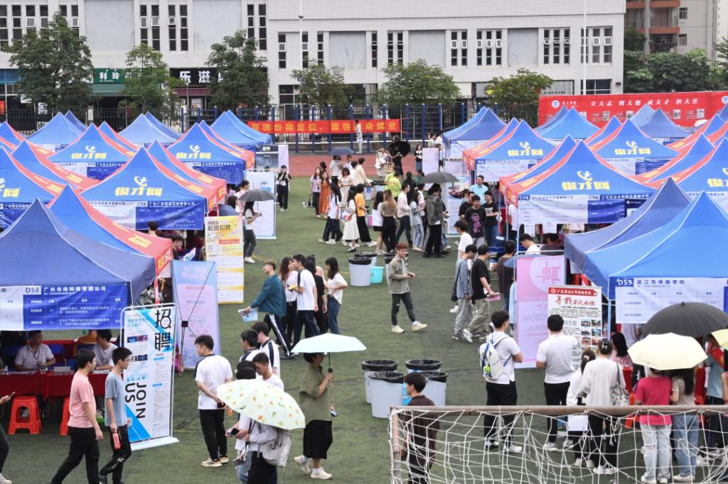 此次供需见面活动依托广东学生就业创业智慧服务平台,采用线上线下同步实现一站式、数字化供需有效对接,线上参会单位927家,提供38235个岗位,线下参会单位来自广州、深圳、佛山、肇庆等地共346家参加现场招聘,提供13726个岗位,包括中国能源建设集团、深圳理士电源、风华股份新能源、丽珠集团、青岛啤酒、星湖科技、李锦记食品、鼎湖山泉、恒兴集团等名优企业,涵盖教育业、智能制造、机械电子、医疗环保、IT互联网等行业,吸引了校内外近五千名学生入场。根据企业填写问卷调查,现场参会企业共收到简历3665份,达成初步意向1725份。