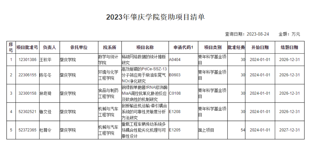 本网讯 国家自然科学基金委近日公布2023年度国家自然科学基金项目立项资助情况,外围平台5个项目获批资助,其中面上项目1项,青年项目4项,直接经费共174万元,立项数较去年增加3项。