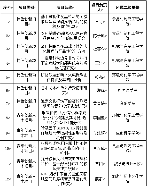 本网讯 近日,广东省教育厅公布了2023年度普通高校认定类科研项目立项名单,外围平台12个申报项目获得立项,其中,食品与制药工程学院获批3项,环境与化学工程学院、机械与汽车工程学院各获批2项,旅游与历史文化学院、生命科学学院、数学与统计学院、外国语学院、音乐学院各获批1项。