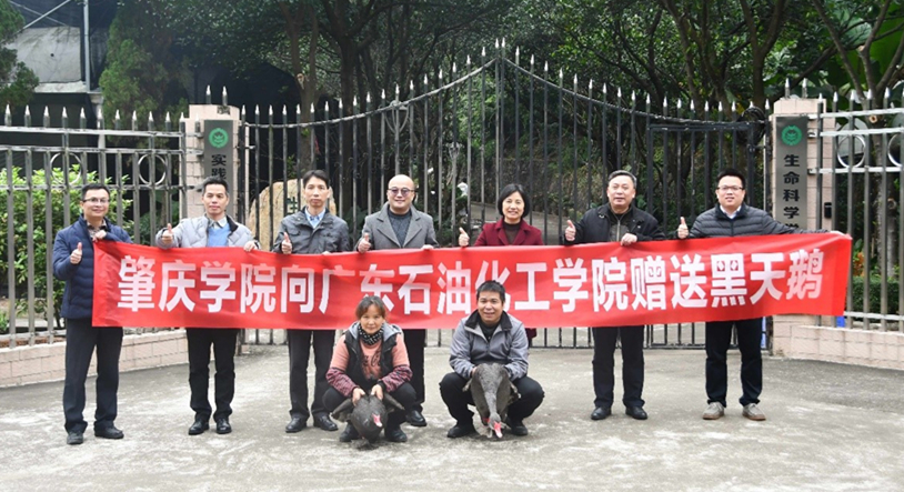 本网讯 12月18日,外围平台向广东石油化工学院赠送一对黑天鹅,加强与这所同处粤西地区高校的交流。