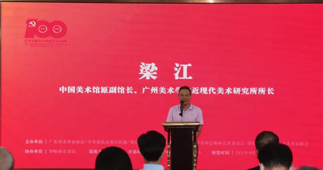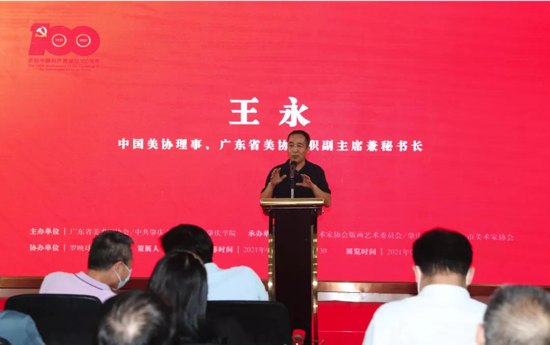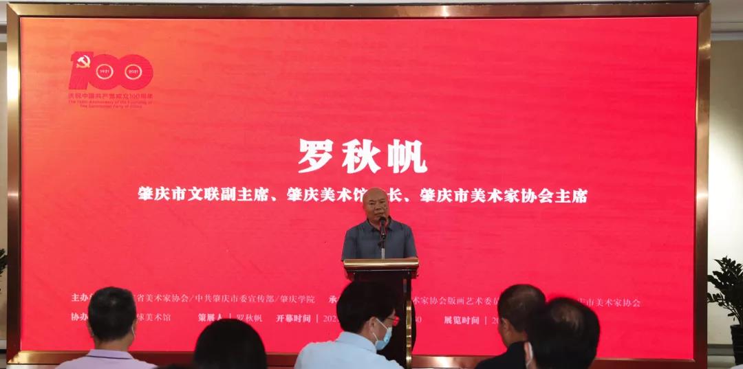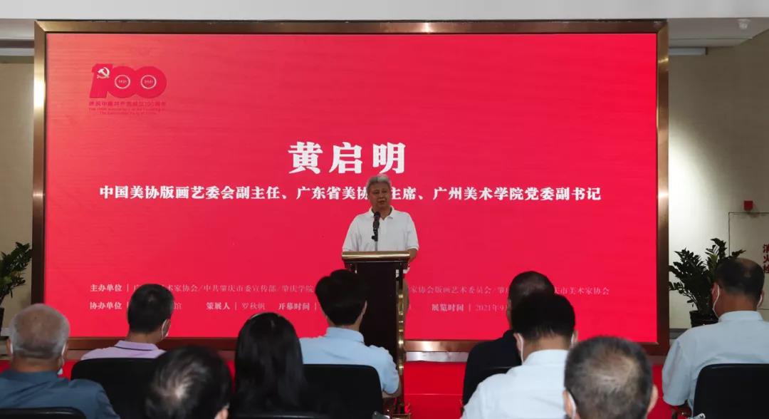 肇庆市委常委江启宁宣布展览开幕。副校长李新昌出席活动。中国美协理事、广东省美协专职副主席兼秘书长王永,中国美协版画艺委会副主任、广东省美协副主席、广州美术学院党委副书记黄启明,中国美术馆原副馆长、广州美术学院近现代美术研究所所长梁江,肇庆市文联兼职副主席、肇庆美术馆馆长、肇庆市美术家协会主席罗秋帆先后致辞。