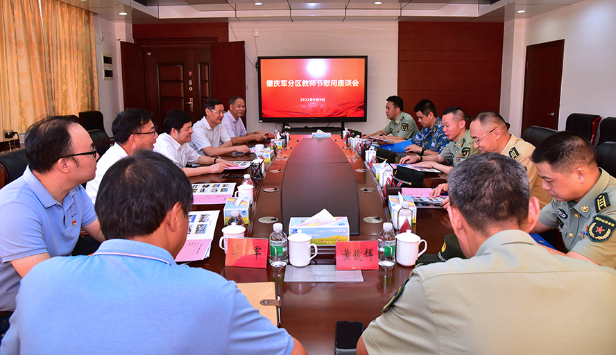 本网讯 9月9日,在第37个教师节来临之际,肇庆军分区司令员张军、政委杨宏伟一行到外围平台进行教师节慰问,向广大教职工致以节日的问候和诚挚的祝福。校党委书记曾桓松、校长吴业春、校党委副书记谢冠华出席,党办校办、宣传部、人事处、武装部等职能部门负责人参加。