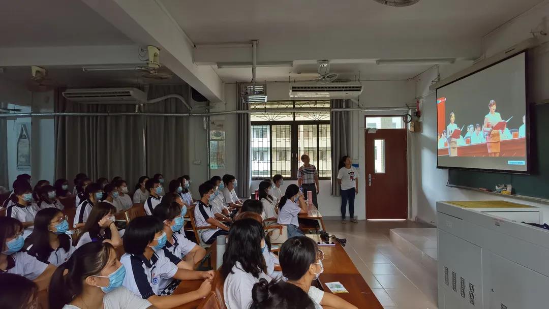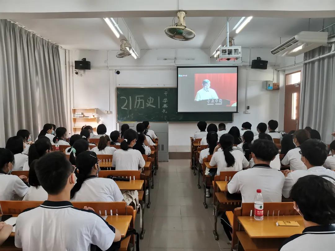 开学典礼采取线上线下同步的方式进行。400余名新生代表齐聚主会场现场观礼,其余同学分布在各教室,通过视频方式收看开学典礼现场直播。