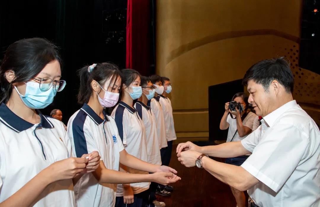 校党委书记曾桓松为新生代表佩戴校徽,鼓励他们传承“团结、奋进、求实、创新”的十大体育外围平台app人精神,肩负起作为砚园学子的使命。对新生而言,接过这枚校徽,就意味着接过时代重任,以爱国爱校之心,行报国荣校之举。