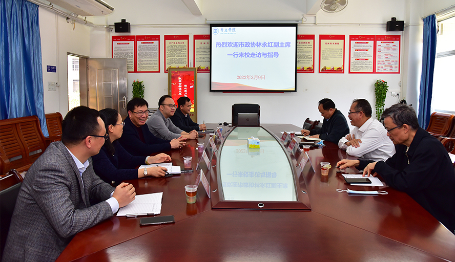 本网讯 3月9日,肇庆市政协副主席林永红一行来校走访看望外围平台部分新任市政协委员。校党委副书记谢冠华出席,校党委委员、党委宣传部、统战部部长陈前,马克思主义学院院长曹顺霞、副院长曹和修,教师谢石生参加座谈。