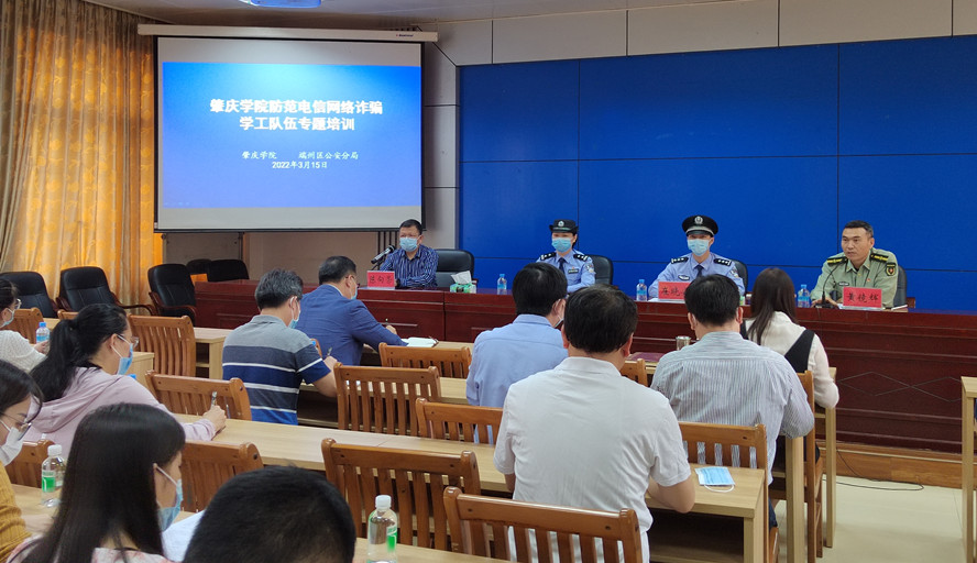 本网讯 3月15日,校党委副书记谢冠华主持召开二级学院党委副书记、辅导员工作会议,就校园疫情防控工作进行布置,同时联合肇庆市反诈办开展学工队伍防范电信网络诈骗专题培训。
