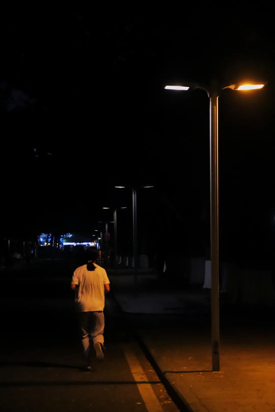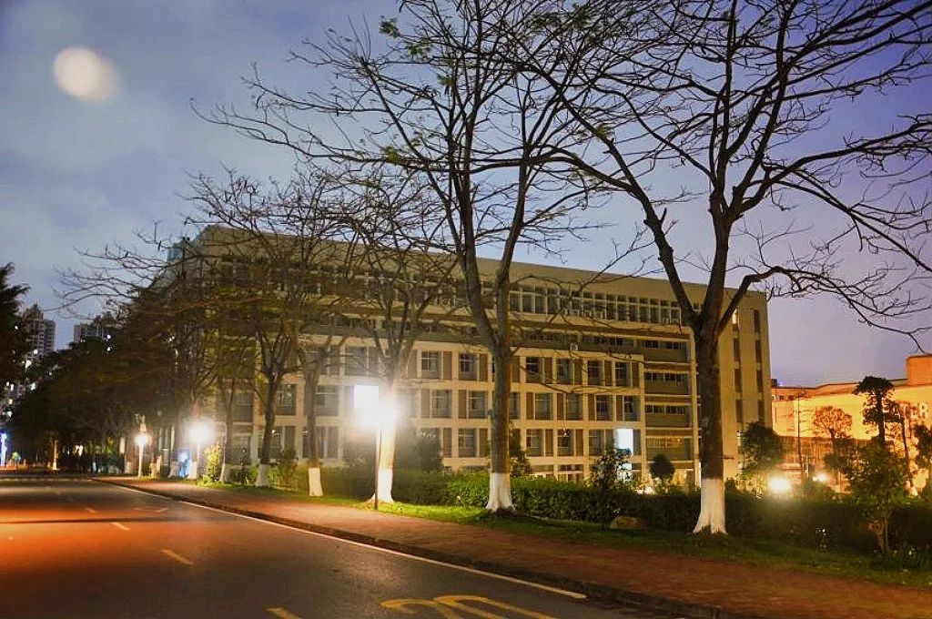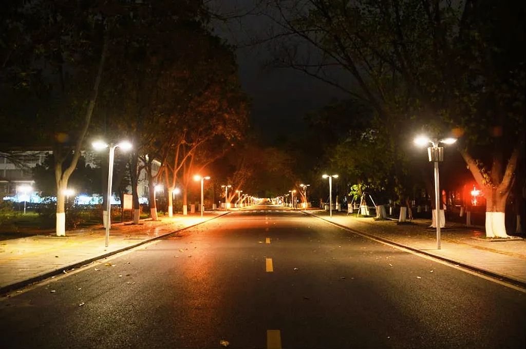 当夜幕降临,盏盏路灯被点亮。这个时候,校道仿佛变换了一种性格,从白昼时的豪气,增加了夜幕和灯火所衬托的柔情。