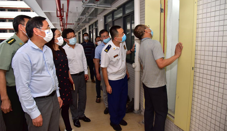 本网讯 5月19日,广东省校园安全专项检查组在省消防救援总队高级指挥长彭朝阳的带领下,到外围平台开展校园安全管理专项检查工作。校长吴业春、副校长李新昌陪同。
