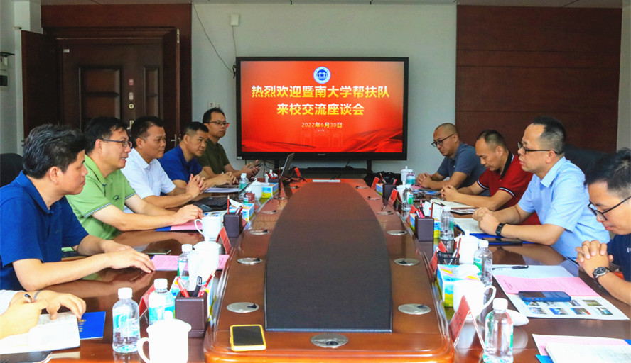 暨南大学帮扶工作队也介绍了帮扶工作情况:一是于6月初与五邑大学对接工作,深入基层开展调研并进行整体设计;二是协助进行社会基金申报和联合项目申报等;三是帮助五邑大学遴选博士生导师,进行博士生联合培养和硕士联合培养;四是推免学生读研,到各个学部、学院进行考研宣讲,鼓励学生考取研究生;五是推动科研团队合作,拓宽合作方面并产生一批影响因素较大的学术论文。