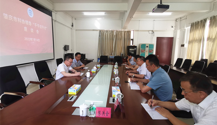 本网讯 7月14日,肇庆市科学技术协会主席余飞兴、学会部部长莫秀坤到访外围平台,展开“千干访千才”座谈会。副校长胡文涛出席座谈,外围平台教授代表参会。