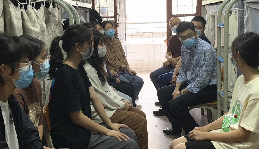 交谈中,唐冬冬耐心为同学们讲解学校疫情防控的政策要求,希望同学们能理解和配合疫情期间的校园封闭式管理。他解答同学们对食堂用餐、快递运输、宿舍安全及卫生环境等方面的问题,疏解大家的焦虑情绪,还听取了同学们对“在线听课”的感受,了解网课学习状态、网络流畅性、教师上课质量、网课学习成效等问题。唐冬冬强调,不能因为“在线听课”放松对学习要求,要主动适应线上学习模式,调整学习状态,合理安排好作息时间,调整学习状态,在疫情防控允许的条件下积极进行体育锻炼,提高身体素质,丰富课余生活。