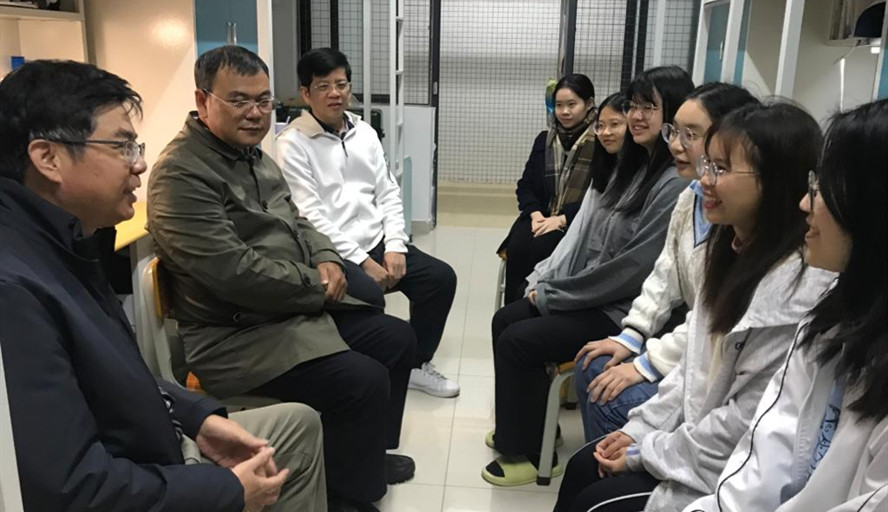本网讯 12月1日晚上,李新昌副校长走访外国语学院学生宿舍,深入基层,了解学生的近况。学院党委书记吕伟荣、党委副书记卢咏以及辅导员陪同参加。