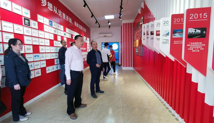 在调研中,调研组一行参观科技园展厅、文化创意艺术馆、专利工作站、科教城核心区沙盘等,对学生创业特色项目进行调研,听取美术学院教师莫世峰对“广府金绣”项目发展情况的介绍。科技园管委办主任陈学年介绍了科技园发展历程及园区企业孵化情况,校团委主持工作副书记马舒洁介绍了青年学子参加“挑战杯”课外学术科技作品竞赛等创新创业活动基本情况。