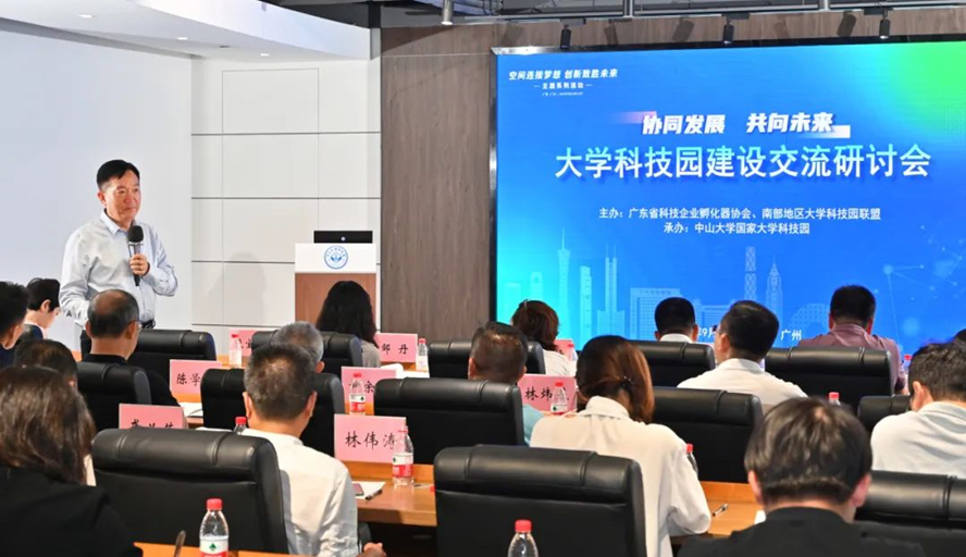 本网讯 9月27日,科技园管委办主任陈学年带领团队成员出席由广东省科技企业孵化器协会、南部地区大学科技园联盟主办,中山大学国家大学科技园承办的大学科技园建设交流研讨会。