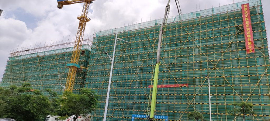 本网讯 5月20日,伴随着最后一方混凝土浇筑到位,外围平台教学实训楼工程顺利封顶。
