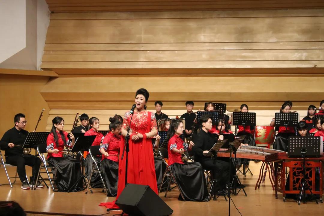 古筝重奏《沙漠玫瑰》以精湛技法展现大漠飞扬的壮观景象;《苏堤漫步》委婉动听,传递浓郁的江南水乡韵味;《赛马》《小放牛》传颂祖国山河万象,用民族音乐表达热忱情感……乐团用精湛的艺术和昂扬的激情献上一段又一段精彩演出,赢得观众阵阵热情掌声。同时,乐团将传统国乐演奏与流行音乐大胆结合,将《好汉歌》《青花瓷》《红楼梦序曲》重新编曲,令人耳目一新。最后,一曲《盛世国乐》恢宏大气,磅礴壮观,尽显唐朝 “九天阊阖开宫殿,万国衣冠拜冕琉”的盛世景象,将演出氛围推向高潮。